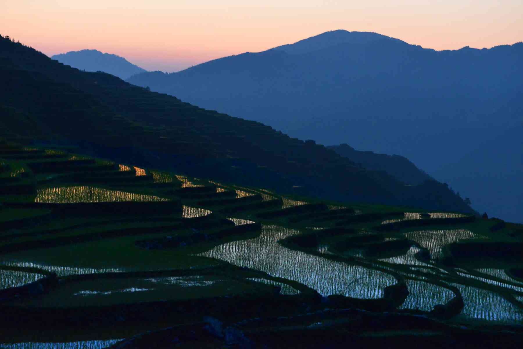 每年4、5月间,加榜梯田便开始放水,准备打田插秧,一年只有一次,注水后的梯田会闪现出银白色的光芒,更凸现出梯田的婀娜曲折的轮廓。农历8月的丰收期,最适合拍摄大片,金黄色的稻谷与银色的水面交错,让人大饱眼福。