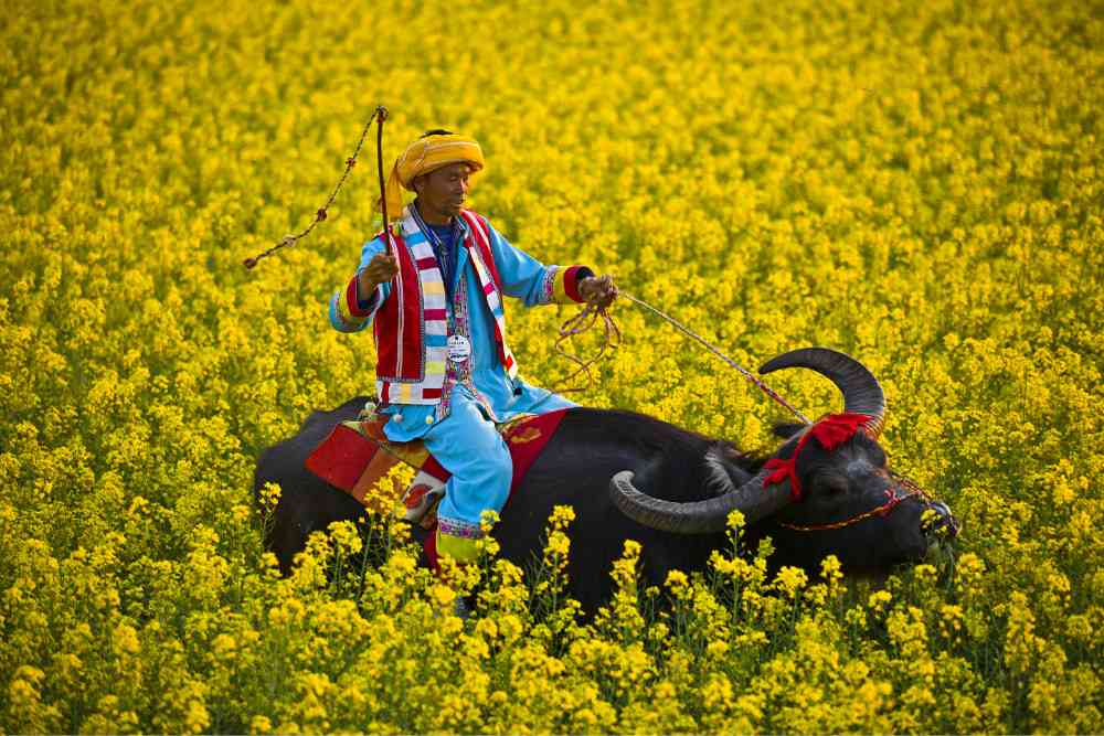 3.罗平地处温湿地带,阴雨天较多,这给拍摄带来一定难度。因为拍摄油菜花一般需要较明亮的光线,这样才能表现出它的鲜亮和艳丽,所以切勿逆光拍摄,尤其是当你面对大场景时,因为这样拍出的油菜花会显得灰暗,一般采用顺光或侧光,拍出的照片亮丽明快,层次分明,色彩饱和度高。