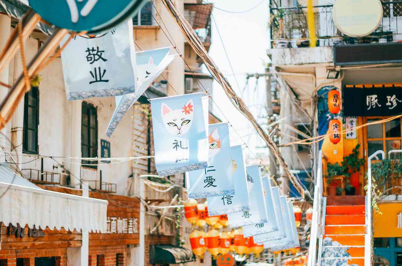 顶澳仔,一个相当有华南韵味的名字,就是大家口中的猫街。短短的一条街道,壁画、挂饰甚至路标,全都是喵星人的元素,太萌啦!
