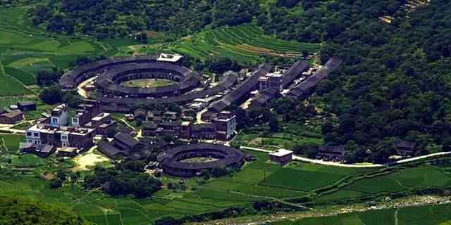 贺州客家围屋在贺州市莲塘镇仁冲村,建于清乾隆末年,距今已有二百多年的历史。围屋占地面积三十多亩,分南、北两座,相距三百米,呈崎角之势。南座三横六纵,有厅堂八个,天井十八处,厢房九十四间;北座四横六纵,有厅堂九个,天井十八处,厢房一百三十二间。整座围屋建筑为方形对称结构,四周有三米高墙与外界相隔,屋宇、厅堂、房井布局合理,形成一体,厅与廊通,廊于房接,迂回折转,错落有致,上下相通,屋檐、回廊、屏风、梁、柱雕龙画凤,富丽堂皇,是典型的客家建筑文化艺术结晶,素有江南“紫禁城”之美称。