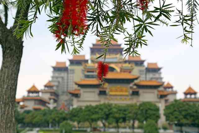 目前云天文化城开放的3大主景:古典园林、6大主题展馆、天圣宝殿之弥勒佛座像。