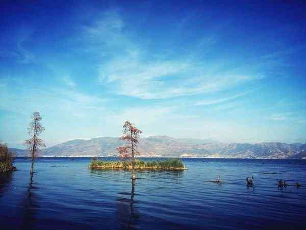 洱海是云南的一个著名景点,因为湖的形状酷似人耳,故名洱海,是中国第七大淡水湖。洱海最南端的团山有一座洱海公园,是观赏苍山洱海景色的好处所。如果在农历十五,月明之夜泛舟洱海,其月格外的亮、格外的圆,其景令人心醉:水中,月圆如轮,浮光摇金;天空、玉镜高悬,清辉灿灿,仿佛刚从洱海中浴出。看着,看着,水天辉映,你竟分不清是天月掉海,还是海月升天。此外,洱海月之着名,还在于洁白无瑕的苍山雪倒映在洱海中,与冰清玉洁的洱海月交相辉映,构成银苍玉洱的一大奇观。