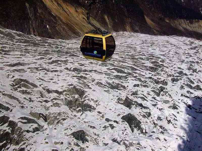 在缆车上,周围是圣洁的冰川世界,了无人迹,一览众山小莫过于这种感受!在观光索道还可鸟瞰“东措日月海”、“冰川云海”等景观。