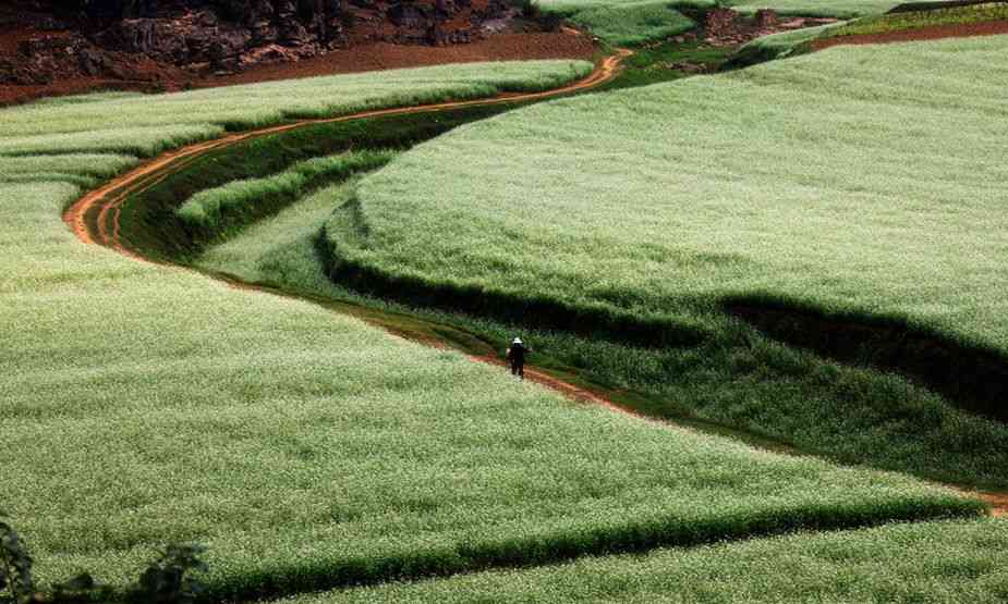 沿南宁-忻城二级公路和上林-马山二级公路行车,到处都有成片盛开的油菜花