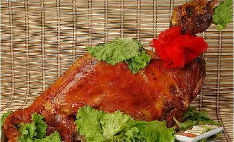 烤全羊:烤全羊是目前肉制品饮食中最健康最环保最绿色的美食了,烤全羊外表金黄油亮,外部肉焦黄发脆,内部肉绵软鲜嫩,羊肉味清香扑鼻,颇为适口,别具一格。