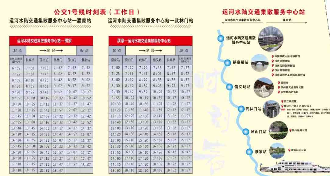 出发码头:武林门码头和拱宸桥西码头双向对开。
