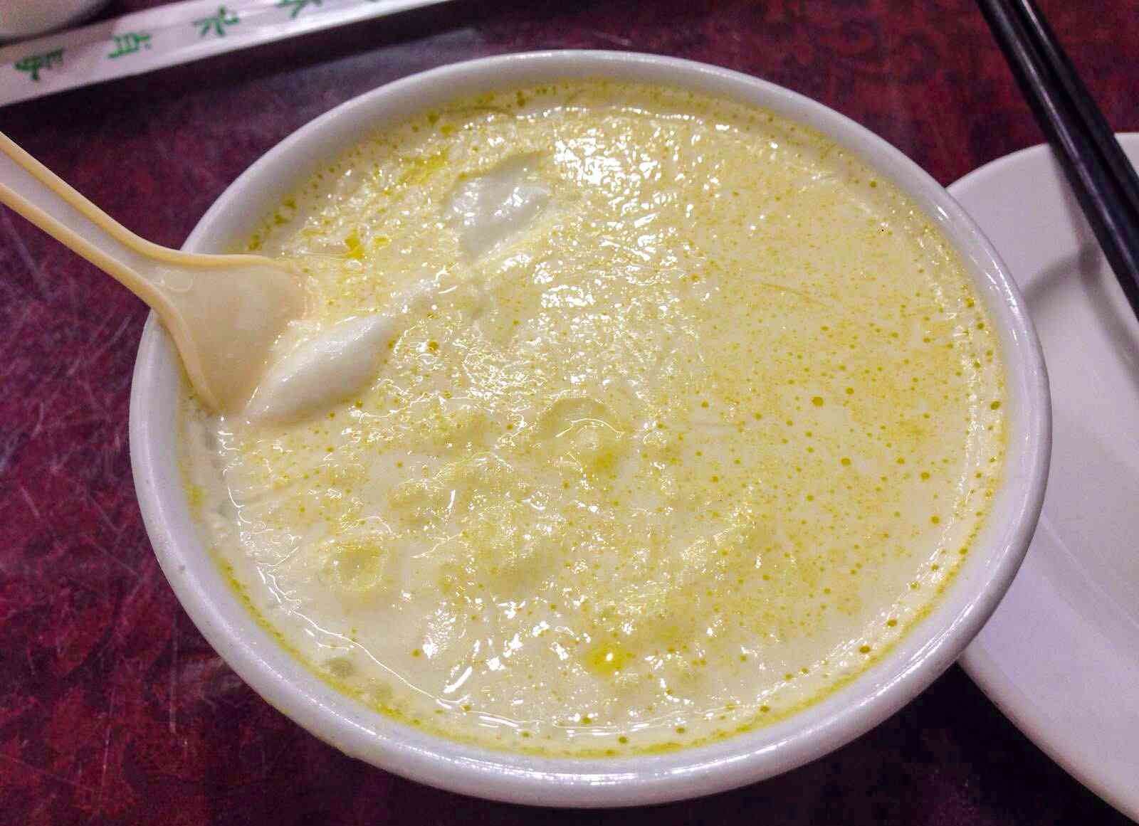 说的再好没吃过可能还是不相信。咱们先来打开一碗牦牛酸奶,只见其表层结为含奶油的黄色硬脂奶皮,掀开一块金黄厚重的奶皮放入口中,一股浓厚的奶香味立刻溢满喉间,而这奶皮之下的酸奶就像豆腐脑一样洁白如脂、芳香扑鼻,挖一勺入口,先是丝丝滑滑、软嫩黏稠,入喉清凉微酸,酸中略微一点甜(这里说的是甜味的,我们还有有原味不加糖的),十分可口宜人。