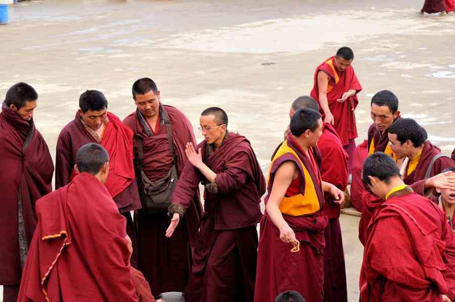 辩经:辩经是学习佛法中不可或缺的环节,藏语称村尼作巴,一般是按照因明学体系的逻辑推理方式,辩论佛教教义的学习课程。
