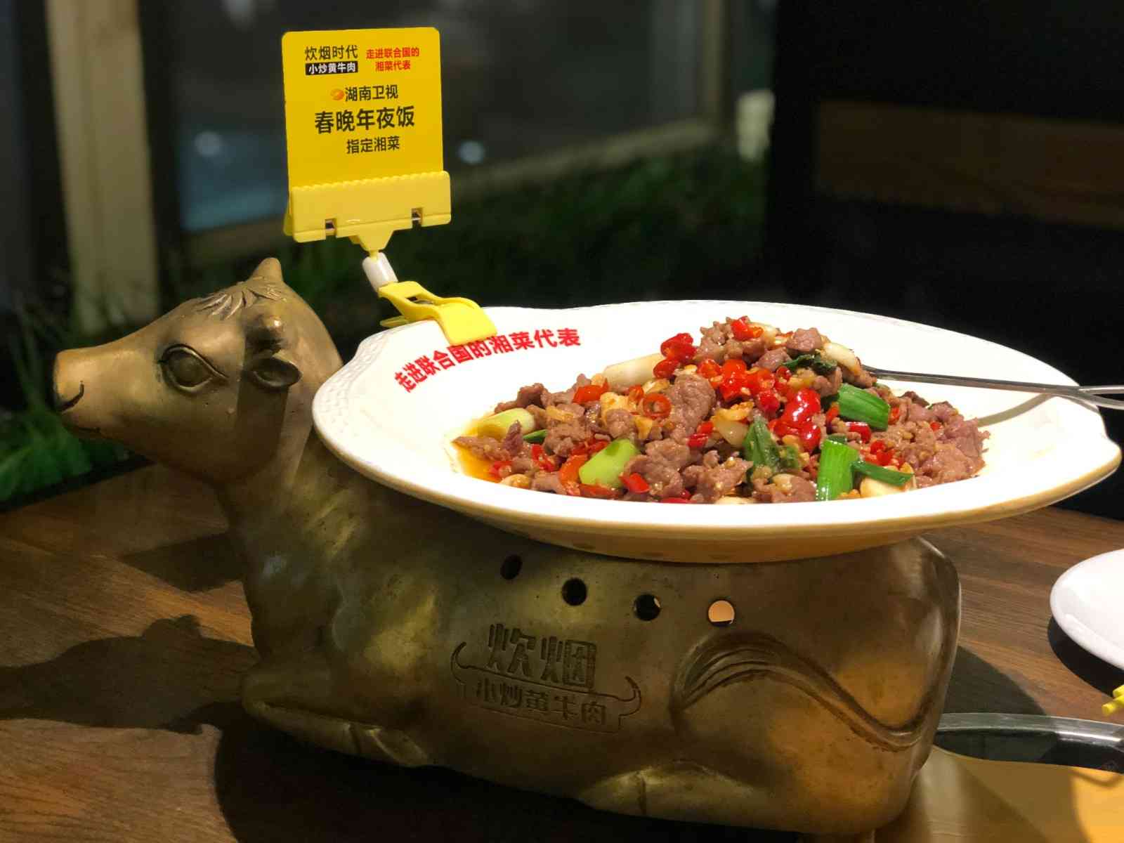 这家店是湘式菜肴,曾代表湘菜走进联合国。是湖南卫视春晚年夜饭的指定代表湘菜,上过《向往的生活》、《天天向上》等节目。他们家的代表菜就是小炒黄牛肉,牛肉非常鲜嫩,配上红绿色的辣椒一起翻炒,简直完美~