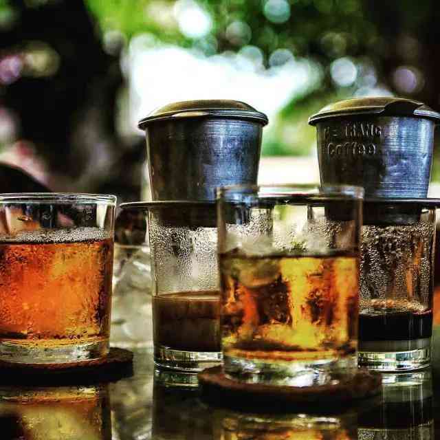越南咖啡的喝法不是用咖啡壶煮,而是要用专门的滴漏咖啡杯。压上一层厚厚的咖啡粉,冲进热水,等待它一滴一滴落进杯子。浓郁的烘焙香味,淡淡的苦感,这是越南咖啡的独有魅力。
