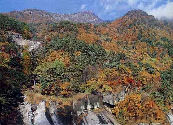 整个景区面积375平方公里,群山大部分海拔1500米以上,最高峰是毗卢峰海拔1909米,是朝鲜半岛西海岸的最高峰。