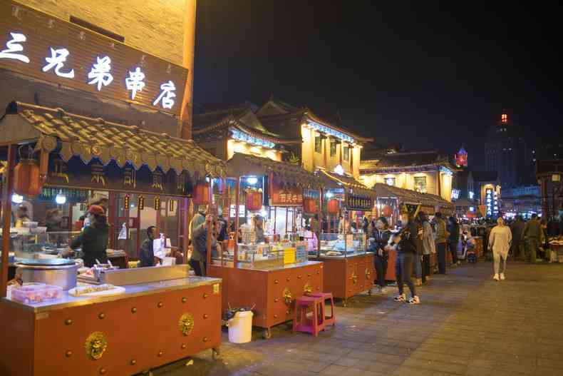 呼伦贝尔古城美食街就在海拉尔市区中心的位置,沿着步行街直走就可以看到摆着一排排古色古香的摊位,如果还是找不到也可以到苏炳文广场,接着逛下去就可以找到。