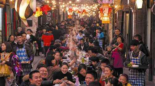 在乌镇过年,你可以过得丰足而幸福,因为能体验到千年古镇传承至今的传统大年习俗:打年糕、做团子、祭祀、长桌年宴等,就像你儿时过年那样,原汁原味。每年的初一到初六,西栅都会有传统长桌年宴,百米长街,宴开百桌,也许很多人是第一次吃这样的长桌宴会,其乐融融,难以忘却。老老少少,煞是热闹,不管认识的不认识的,互敬一杯酒,浓浓的年味就暖进心窝里了。